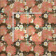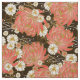 Tela de patrón japonesa con crisantemos y mamáes en marrón oscuro