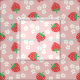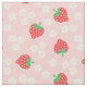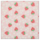 La tela rosada con un modelo de la fresa florece las fresas circundantes.