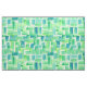 Un tejido verde bonito con un patrón de ladrillo abstracto en varios tonos de agua verde y azul con salpicaduras y manchas de pintura. Bonita tela única para prendas de vestir, artesanía o decoración casera.