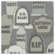 Consiga listo para una cierta diversión fantasmagórica con las lápidas mortuarias de Halloween en esta tela. Las lápidas mortuarias tienen nombres como "I.M. Scary", "otoño Webb", "espíritu necrófago del caramelo", "aullido del lobo", Jack O. Lantern", y más, en sombras del gris. © original Anne Coffey del arte.