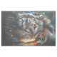 La imagen muestra una representación digital o artísticamente mejorada de un león. El león está adornado con varios elementos decorativos, entre ellos una cabecera de cama con una gran joya azul en el centro y plumas de colores colgadas. El mané del león es voluminoso y detallado, con una mezcla de piel oscura y clara. Alrededor del cuello del león, hay numerosos collares de perlas, piedras y otros objetos ornamentales que le dan un aspecto intrincado y elaborado. El fondo presenta una escena oscura, cósmica, con indicios de brillantes elementos que realzan el ambiente místico y majestuoso de la imagen. Esta imagen es interesante debido a su combinación de elementos naturales y fantásticos, creando una imagen sorprendente e imaginativa del león. La foto muestra un trozo de tela que es 100% algodón. La tela tiene un conteo de hilos de 210, lo que contribuye a su textura suave y duradera. La anchura de la tela es de 56 pulgadas (aproximadamente 142 cm), lo que proporciona una generosa cantidad de material para varios proyectos. El tejido parece tener un acabado de alta calidad, por lo que es adecuado tanto para la ropa como para la decoración del hogar. "León con la cabecera de la cama, plumas coloridas, mané intrincado, collares ornamentales, fondo cósmico, místico y majestuoso. Tela 100% de algodón, número de hilos 210, anchura 56 pulgadas, textura de alta calidad, suave, duradera, versátil para la ropa y la decoración del hogar.
