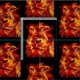 Los leones flamean fuego sobre la tela negra ¡La adición perfecta a tu proyecto especial! ¡Sólo desde arriba en la montaña!