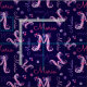 Monograma gráfico decorativo moderno dibujado a mano letra inicial M y nombre tejido con patrones repetidos. Bonito de arte monocromático M diseño dibujado a mano adornado con flores y corazones. Personaliza con tu propia letra la elección del nombre M (por favor ten en cuenta que no todos los nombres encajarán debido a la naturaleza del tipo de letra) actualmente lee María otras longitudes de nombres están disponibles, si necesitas ayuda contacta conmigo, estoy encantado de publicar uno para tu nombre. Tela en tonos rosa y violeta sobre un fondo azul marino oscuro que puede cambiarse si es necesario. Una excelente manera de personalizar sus proyectos de costura y tejido. Ideal para chicas con nombre propio. Arte original y diseño de Sarah Trett para www.mylittleeden.com