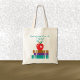Una bolsa de algodón natural diseñada para profesores o bibliotecarios de escuelas. El ilustracion consiste en una pila de 3 libros con una manzana roja encima de ellos. Personalízala con tu cita de enseñanza favorita o manténgalo tal como está. El que está en el lugar dice : "La felicidad pertenece a los que enseñan a las pequeñas mentes" . © ArianeC Ilustraciones-Todos los derechos reservados.