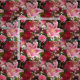 Este tejido de bonito presenta un diseño pintado de rosas rojas con lirios rosados y flores de yeso intercaladas.