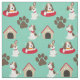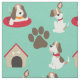 ¡Los niños de la tela amarán, ofrecen un fondo con los diversos perros del beagle, uno de la aguamarina en una cama del perro, así como la pata marrón del perro imprime y las casas de perro con un hueso que cuelga sobre la puerta! ¡Los amantes del pequeño perro que aman beagles amarán esta tela de la diversión!