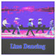 Esta tela tiene un grupo de bailarines de línea con notas musicales encima de ellos. Los colores principales son el azul, el rosa y el negro. Esta versión tiene texto de LINE DANCING y hay otro sin las palabras. También está disponible en tonos rojo, negro y amarillo.