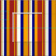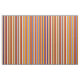 Este diseño presenta un patrón de rayas con colores como naranja, rojo, marrón, blanco y azul.
