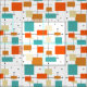 Tela Líneas de cuadrados turquesa naranja a mediados de