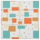 Esta fabulosa tela de estilo moderno de mediados de siglo está compuesta por cuadrados, rectángulos, líneas y puntos, en los colores azul turquesa, naranja, crema y negro. Añade ese toque de diversión a tu proyecto de costura.