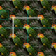 Tela Loro Caique blanco con vientre y árbol de bambú