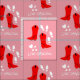 botas de vaquero rojas, corazones de amor y huellas de pies de baile; ideal para quien ame el Baile de Línea.