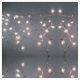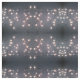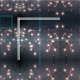 La obra de arte sobre esta tela fue creada a partir de una fotografía original de ZoeSPEAK de una cadena de luces blancas y una cuerda negra vacía, colgada en giros y vueltas frente a una pared de estuco. Las luces tienen un resplandor rosado y la pared es un gris azulado oscuro.