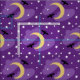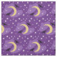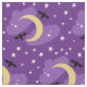 Tela de Halloween, mágica y elegante, con luna, estrellas, nubes, murciélagos negros y fondo morado.