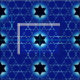 Una simple imagen fractal de color azul de múltiples instancias de un Magen David (Estrella de David) formado por líneas entrecruzadas de vidrio o cristal, la estrella central está llena de azul oscuro.