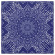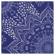 Tela de mandala azul índigo con un elegante diseño de flor de encaje que está decorado con elementos caprichosos.