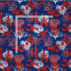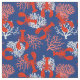 Tejidos costeros rojos, blancos y azules, adornados con langostas rojas y coral de mar rosa y blanco sobre azul marino