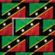 Elegante y patriótico Tela de BANDERA KITTITIANA, mostrando el contorno del mapa en falso efecto grabado en relieve combinado con la bandera de ST KITTS & NEVIS, ambientada en un fondo NEGRO.