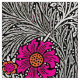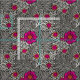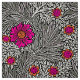 Tela en un vintage William Morris, arte Nouveau, impresión del damasco de la maravilla de hojas y de flores, digital aumentada y coloreada, en las sombras de gris/de gris y el blanco, acentuadas con el naranja rosado y coralino fucsia, en un fondo oscuro del gris del grafito