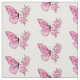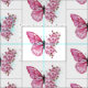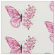 Arreglo floral de mariposa rosa con flores japonesas de cerezo rosadas sobre fondo blanco.