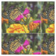 Hermosa mariposa monarca sobre una flor rosada de mariscos. Hace una tela encantadora para toda tu costura de casa, ideas de decoración. Fotografía de derechos de autor de Debra Carr