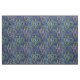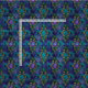 Este diseño vibrante tiene plumas de pavo real verde azuladas/verdes sobre un fondo violeta con mariposas verdes y violetas en el interior de marcos de oro lujosos