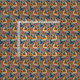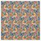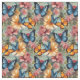 Las mariposas azules y naranjas y las flores de estilo impresionista crean una hermosa tela perfecta para ropa y edredones.