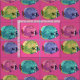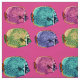 El tejido presenta un colorido patrón submarino - peces de arrecife de coral llamados mariposas, menta, amarillo, rosa y violeta. © Julia Khoroshikh. Diseño de pescado.