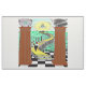 tela masónica de Shriner que representa un shriner que lleva a un pequeño niño encima de las escaleras masónicas simbólicas