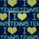 Me Encanta El Tenis. Un bonito tenista o una tela pro entrenador con una bola de tenis con forma de corazón en un patrón azul bonito.