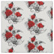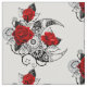 Contorno, luna de media luna mecánica con engranajes, decorada con rosas rojas con tallo negro y hojas sobre fondo blanco. Steampunk