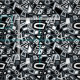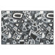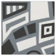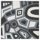 Diseño abstracto retro en blanco y negro sobre un fondo gris.