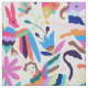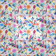 Un patrón de animales coloridos y flores basado en tela otomí mexicana tradicional.