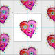 MI CORAZÓN GOLPEARÁ SOBRE Tejido de coser y de coser Una sonriente emoji de estilo arte contemporáneo como un emoticono en forma de corazón rojo en los vivos y coloridos colores de San Valentín de rojo, rosa, magenta y morado acentuados con otros colores complementarios.