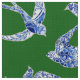 Tejido cerca del patio, "Moda Chinoiserie Pájaros tragos florales en azul y blanco con verde". Un estilo contemporáneo y a la vez moderno y clásico que se ha hecho nuevo para hoy con este fondo verde y luminoso. Todo el arte fue pintado en acuarela acrílica sobre lienzo por Audrey Jeanne Roberts, artista y diseñadora con licencia internacional, derechos de autor.