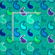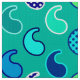 Tela en un minimalista y moderno patrón de paisajes, realzada con puntos: tonos turquesa, agua, azul cobalto y verde cal, sobre un suave fondo turquesa/pavo real