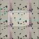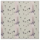 Pájaros negros en fondo beige con la imagen del árbol del rosa de color salmón, bloqueo modelado.