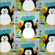 Modelo artístico del pingüino. El gráfico lindo del dibujo del pingüino con la pintura colorida salpica. Para los amantes y/o los pintores del pingüino. Muestre su creatividad con este arte del pingüino que usted puede modificar para requisitos particulares completamente. Cambie el color de fondo azul claro a cualquier color de su opción.