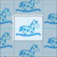 Un dibujo lindo de un caballo mecedora azul en un fondo azul. Perfeccione para sus proyectos de DIY para los bebés.