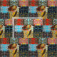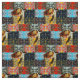 Los remiendos rectangulares de diseños y de imágenes loopy de la tortuga de mar en colores calientes modelan esta tela bonita.