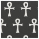 Esta tela tiene un modelo del símbolo de la cruz del ankh, con los ankhs blancos en un fondo negro. El ankh es el símbolo egipcio antiguo de la vida. El modelo y el fondo negro se pueden corregir si usted prefiere, usando la opción del personalizar.