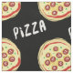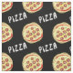 Esta tela ofrece un modelo de las pizzas de salchichones contra un fondo negro.