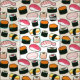 Una variedad de ilustraciones frescos del makimono del sushi componen este modelo suntuoso.