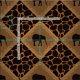 Los cuadrados de alternancia fijan en una diagonal de un sistema marrón profundo del elefante en una falsa forma herbosa medio-marrón del diamante de la textura que se confine en el modelo de cuchillas de la hierba altas. Modelo de alternancia con un marrón del oscuro-chocolate (casi negro) y fondo del estampado de animales de la jirafa del moreno.