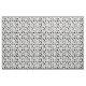 La tela con un modelo blanco y negro de las siluetas de diverso peluquero equipa, como las tijeras, los peines, los secadores de pelo, el etc.