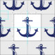 Esta tela temática náutica ofrece una repetición de las anclas de los azules marinos en un fondo llano. El color de fondo es color de la tela.