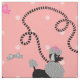 Este diseño francés lindo de la tela del caniche se deriva de las faldas clásicas del caniche de los años 50. Los perros de caniche bonitos se hacen en gris y negro y tienen pompones de los correos de la piel y del plantilla-estilo. Se entrelazan en un modelo inconsútil de repetición en un fondo del rosa del vintage con un efecto rosa claro del lunar.