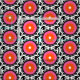 Modelo étnico en color brillante con las flores estilizadas, las hojas y las formas circulares con la textura inconsútil del vector de los adornos del Kazakh, del turco, del Uzbek para la impresión, moda del verano de la primavera, papel pintado, tela, © y ® Bigstock® de la materia textil - todos los derechos reservados.