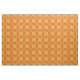 Modelo inspirado del 60's-70s con un backrogund anaranjado y remolinos del naranja.