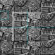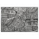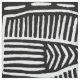 Diseño inspirado en Mola de un pájaro abstracto en blanco y negro. Cuadrado de 21x21 pulgadas por Virginia Vivier, Vagabond Folk Art.